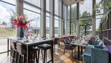 The hotel’s restaurant, Bremner, offers a creative mix of local Dutch flavors and international cuisine, known for its delicious breakfasts and evening cocktails. Guests can relax or work in the cozy lobby lounge, while the rooftop bar provides stunning city views for a perfect end to the day.